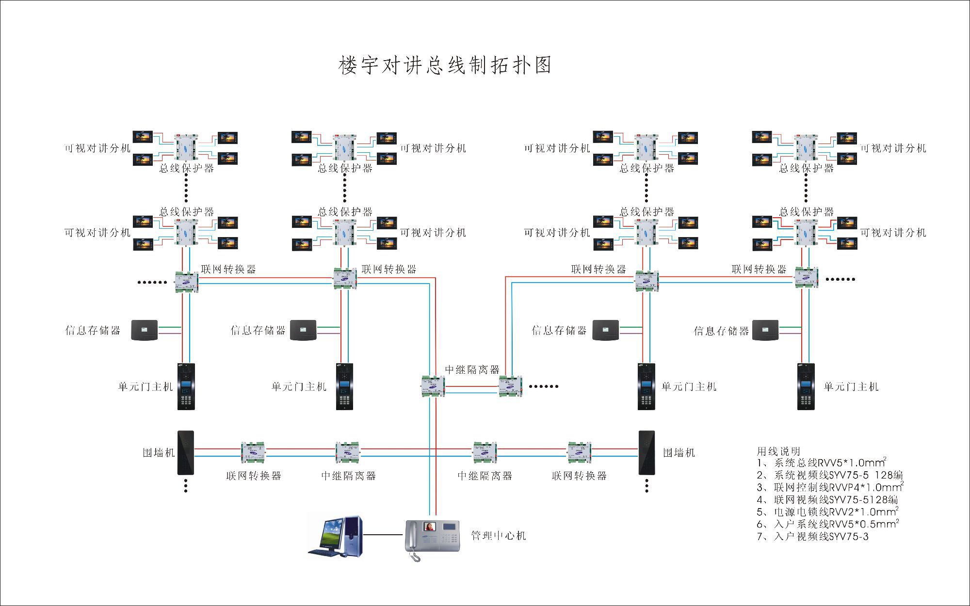 可视对讲系统是针对我国各地区目前实行封闭式管理住宅小区的特点专门设计的产品。系统以管理中心为核心,以楼宇可视对讲为主体,可与计算机系统相连接,实现呼叫、对讲、监视、开锁(钥匙、密码)、三方通话、自带 IC 卡门禁、室内分机带安防报警等多种功能,达到物业综合管理的最佳要求。