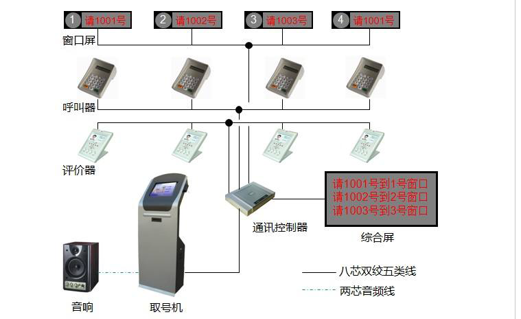 主要由发号主机、主控箱、叫号器、显示屏、音箱等组成。