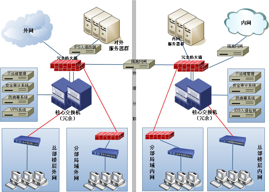 应根据用户提出的技术要求,对机房建设的建筑物进行实地勘查,依据国家有关标准和规范,结合所建各种系统运行特点进行总体设计。总体设计方案以业务完善技术规范,安全可靠为主,确保系统安全可靠的运行。在选材投资方面根据功能及设备要求区别对待,并满足用户的特殊要求,做到投资有重点,保证机房场地工作人员的身心健康,延长系统的使用寿命。机房工程建设的工作就是围绕这个根本任务,通过采用优质产品先工艺把上述设计思想有机地结合起来,为机房里的设备和工作人员创造一个安全、可靠、美观、舒适的工作场地。